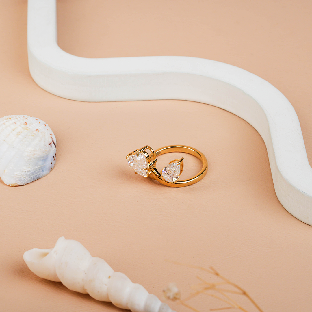 Celebrate two souls becoming one with the Heart & Pear Cut Diamond Toi-et-Moi Ring for Women from SaffronStar.store.