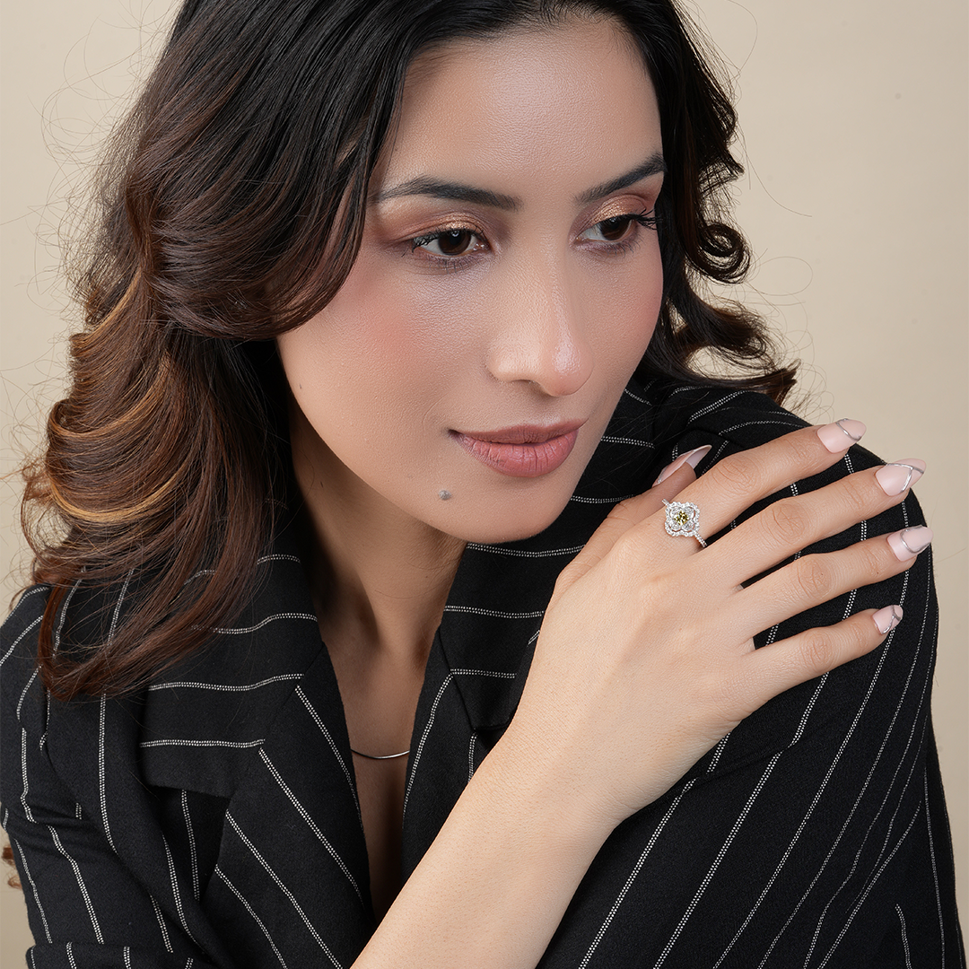 Celebrate your special moments with our Princess Cut Yellow Diamond Halo Engagement Ring. The vibrant princess-cut yellow center stone shines brightly, enhanced by a shimmering halo of sparkling diamonds that add depth and brilliance. Crafted in 14K or 18K gold or platinum, this ring blends modern charm with timeless beauty - a stunning choice for proposals, anniversaries, or meaningful celebrations.