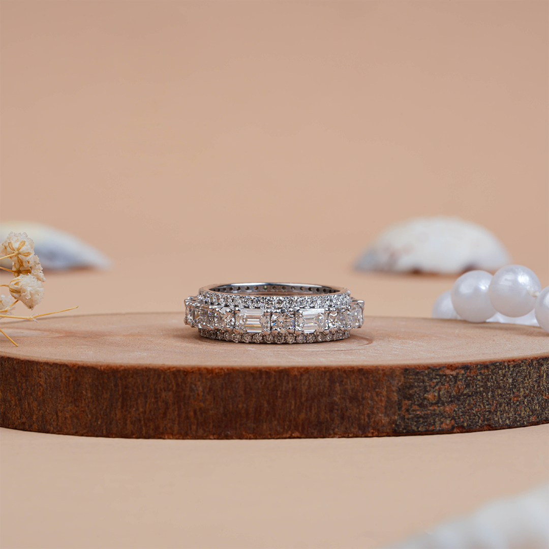Celebrate everlasting elegance with the Round & Emerald Cut Diamond Wedding Band for Women from SaffronStar.store.