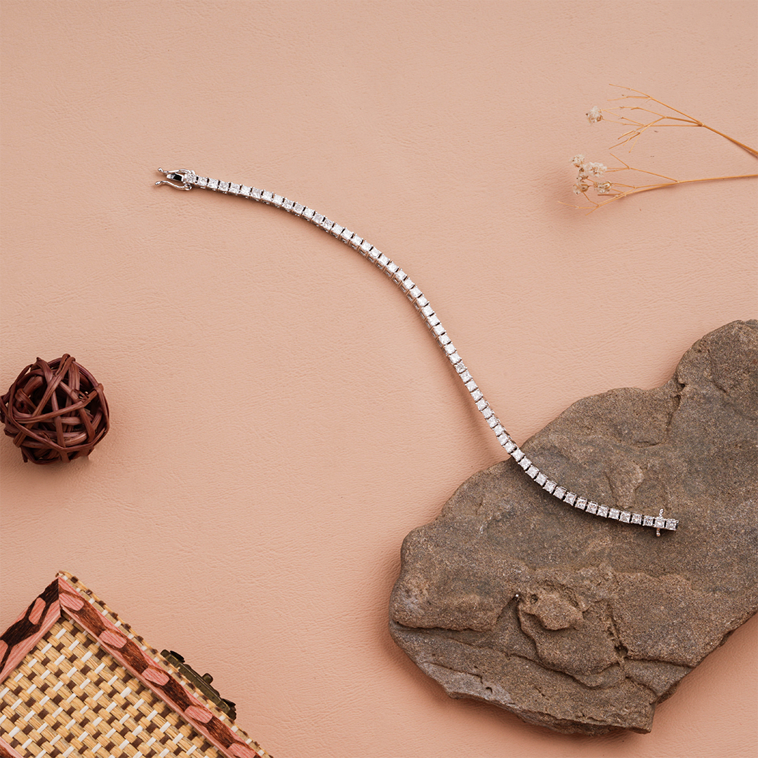 Add a touch of modern elegance with this Princess Cut Prong Set Lab Diamond Tennis Bracelet. Featuring sparkling princess-cut lab-grown diamonds set in a classic prong design, it delivers brilliant shine from every angle. Perfect for gifting her on birthdays, anniversaries, or special occasions, this bracelet combines timeless style with ethical craftsmanship for a luxurious statement piece.