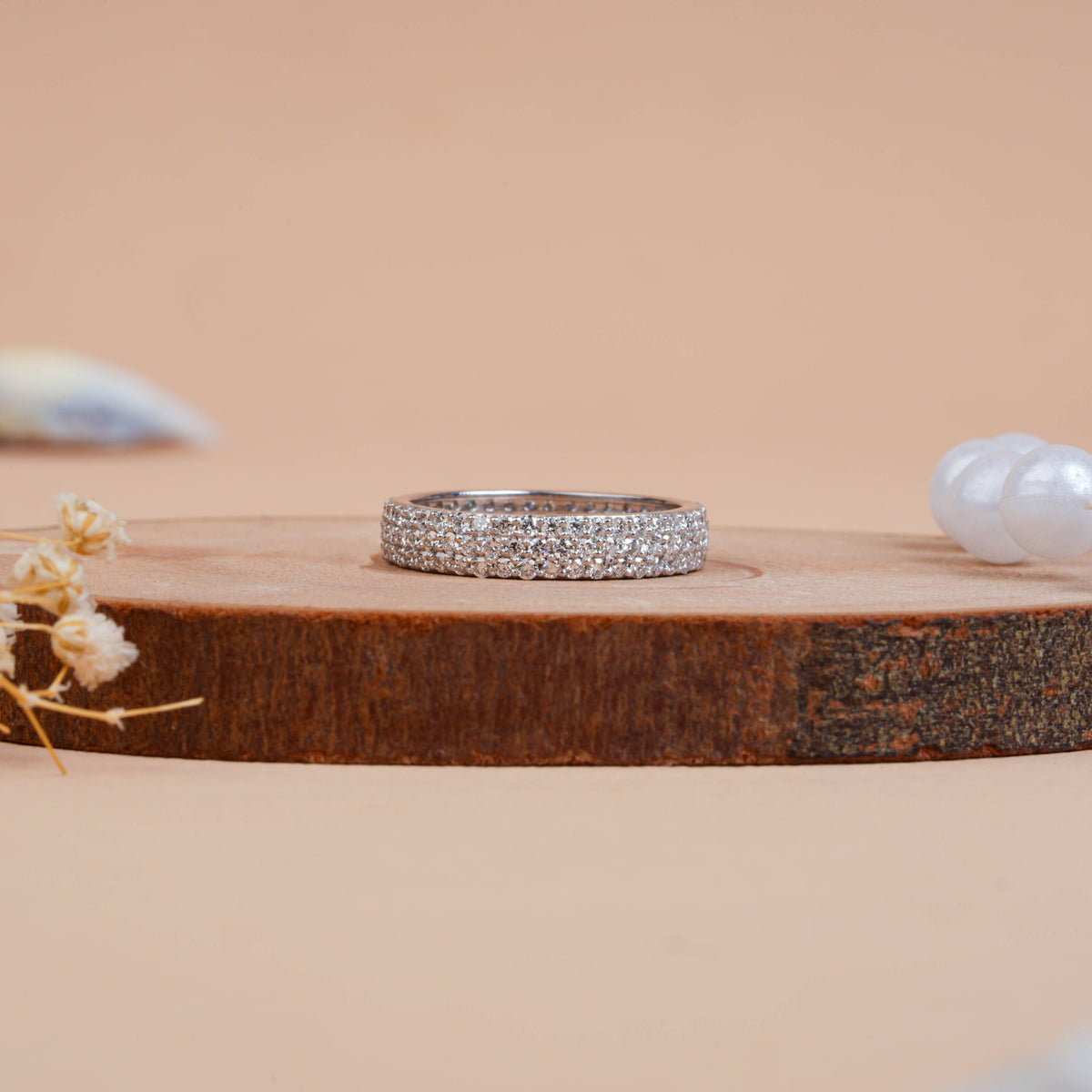 Experience nonstop sparkle with our Three-Row Micro Pavé Lab Diamond Eternity Band Ring. Three rows of finely set lab-grown diamonds create a continuous ribbon of brilliance, symbolizing love that shines from every angle. Expertly crafted in 14K or 18K White, Yellow, or Rose Gold, as well as Platinum, this radiant eternity band is perfect for weddings, anniversaries, stacking, or gifting her a timeless statement of devotion.
